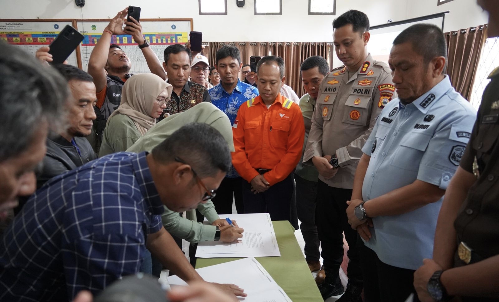 Mediasi ini dihadiri Kapolres Luwu Timur, AKBP Ario Putranto T.M., Kasi Intelijen Kejaksaan Negeri Luwu Timur, Deri Fuad Rachman, Pabung, Kepala Kantor Pertanahan, Camat Nuha, Arief Fadillah Amier, serta perwakilan PT. Vale Indonesia Tbk.