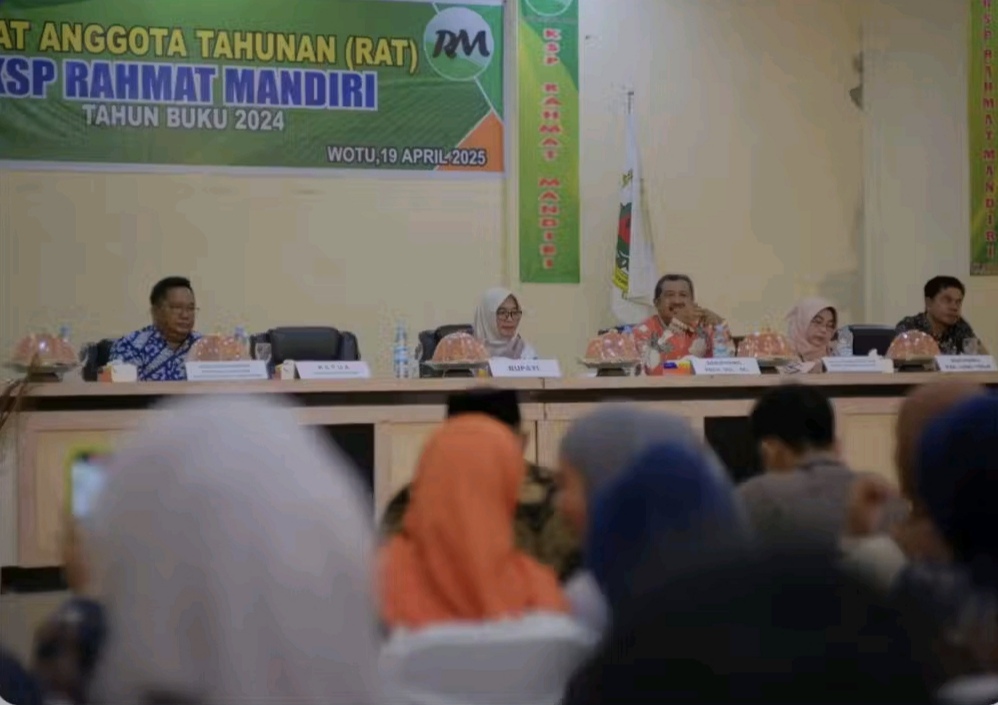 LUWU TIMUR, TOP-NEWS.CO.ID –Wakil Bupati Luwu Timur, Hj. Puspawati Husler, secara resmi membuka kegiatan Rapat Anggota Tahunan (RAT) Koperasi Rahmat Mandiri Tahun Buku 2024 yang diselenggarakan di Aula Hotel Sikumbang Tomoni, Sabtu, (19/04/25).