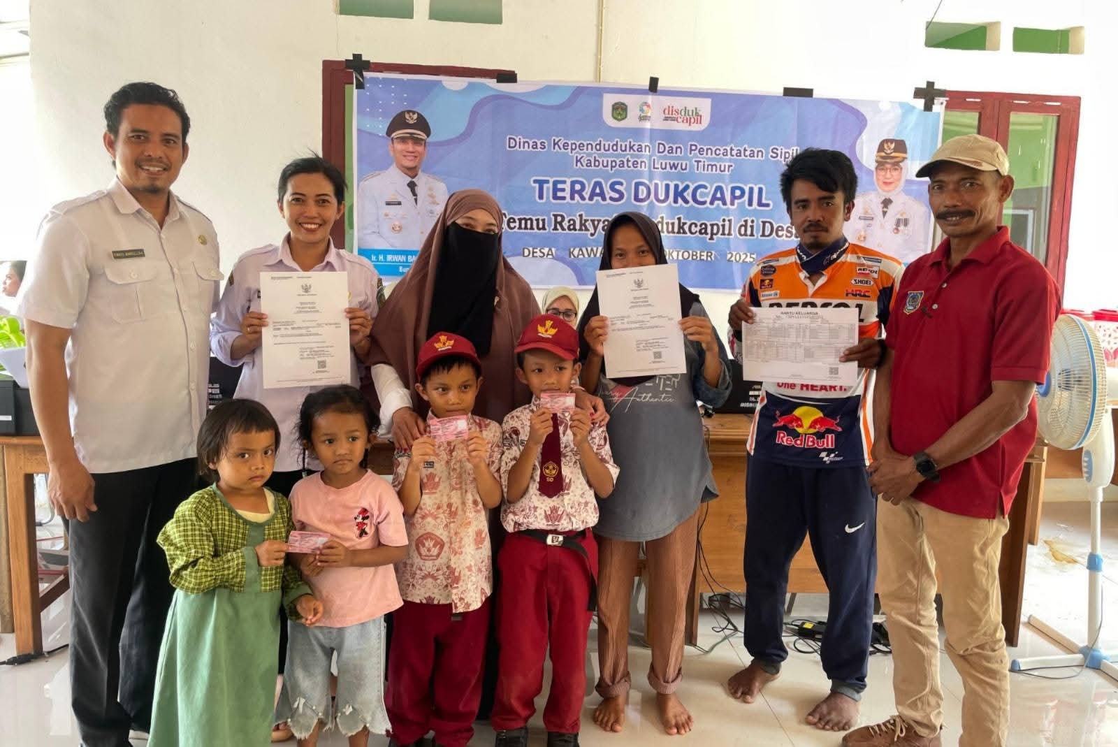Warga pelosok yang ada di Kabupaten Luwu Timur, Sulsel, dapat mengurus dokumen kependudukan di desa masing-masing melalui program inovasi "Teras Dukcapil", Kamis (16/10/2025).