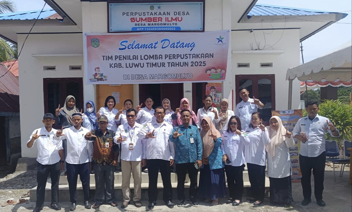 LUWU TIMUR | TOP-NEWS.CO.ID — Tim penilai Lomba Perpustakaan Desa tingkat Kabupaten Luwu Timur, Sulawesi Selatan, melakukan kunjungan verifikasi lapangan ke Perpustakaan Sumber Ilmu Desa Margomulyo, Kecamatan Tomoni Timur, Rabu (12/11/2025).