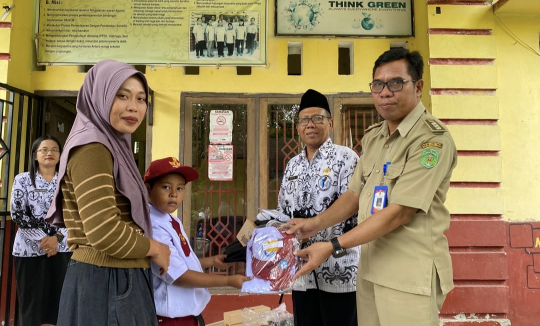 LUWU TIMUR | TOP-NEWS.CO.ID – Camat Tomoni Timur, Yulius, menyerahkan seragam sekolah gratis kepada siswa SDN 174 Gunung Sari dan SDN 177 Cendana Hitam, Senin (30/03/2026).