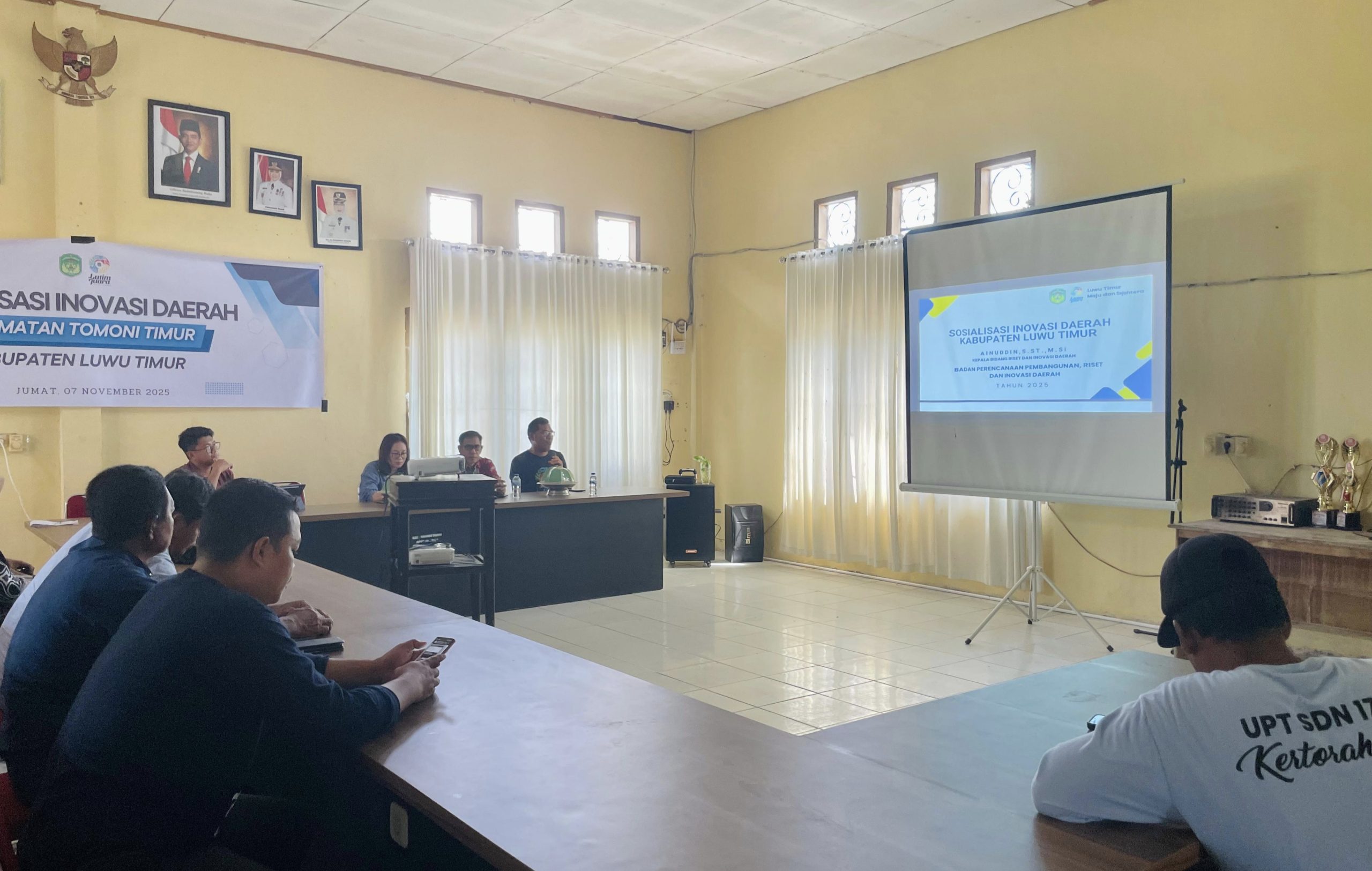 LUWU TIMUR | TOP-NEWS.CO.ID – Pemerintah Kecamatan Tomoni Timur, Kabupaten Luwu Timur, Sulawesi Selatan, menggelar kegiatan Sosialisasi Inovasi Daerah di Aula Kantor Kecamatan, Jumat (07/11/2025).