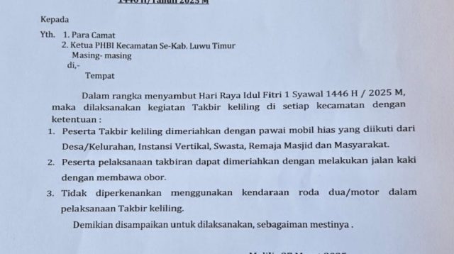 LUWU TIMUR, TOP-NEWS.CO.ID – Pemerintah Kabupaten Luwu Timur, Sulawesi Selatan, telah mengeluarkan Surat Imbauan kepada [Baca Selengkapnya]